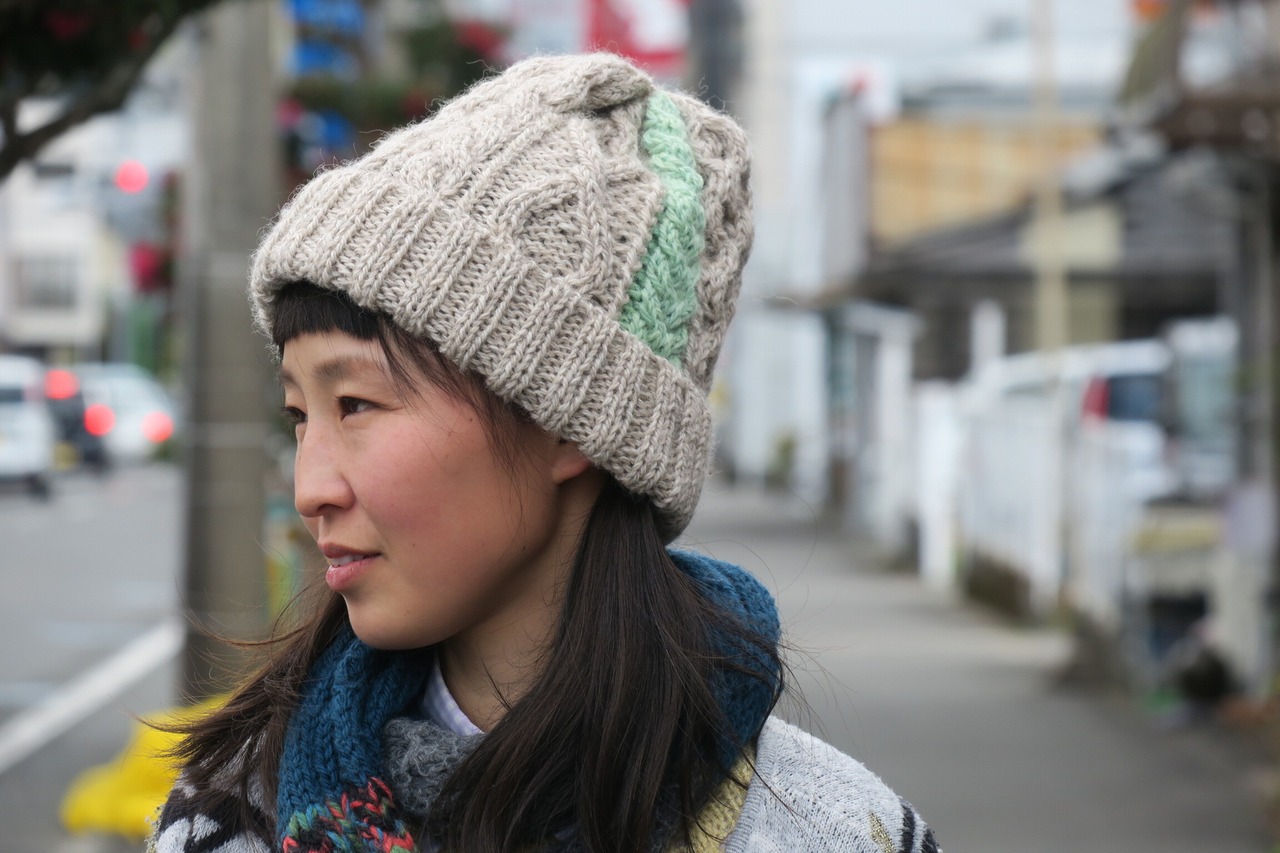 ボリュームのある温かなニット帽を作りまして、