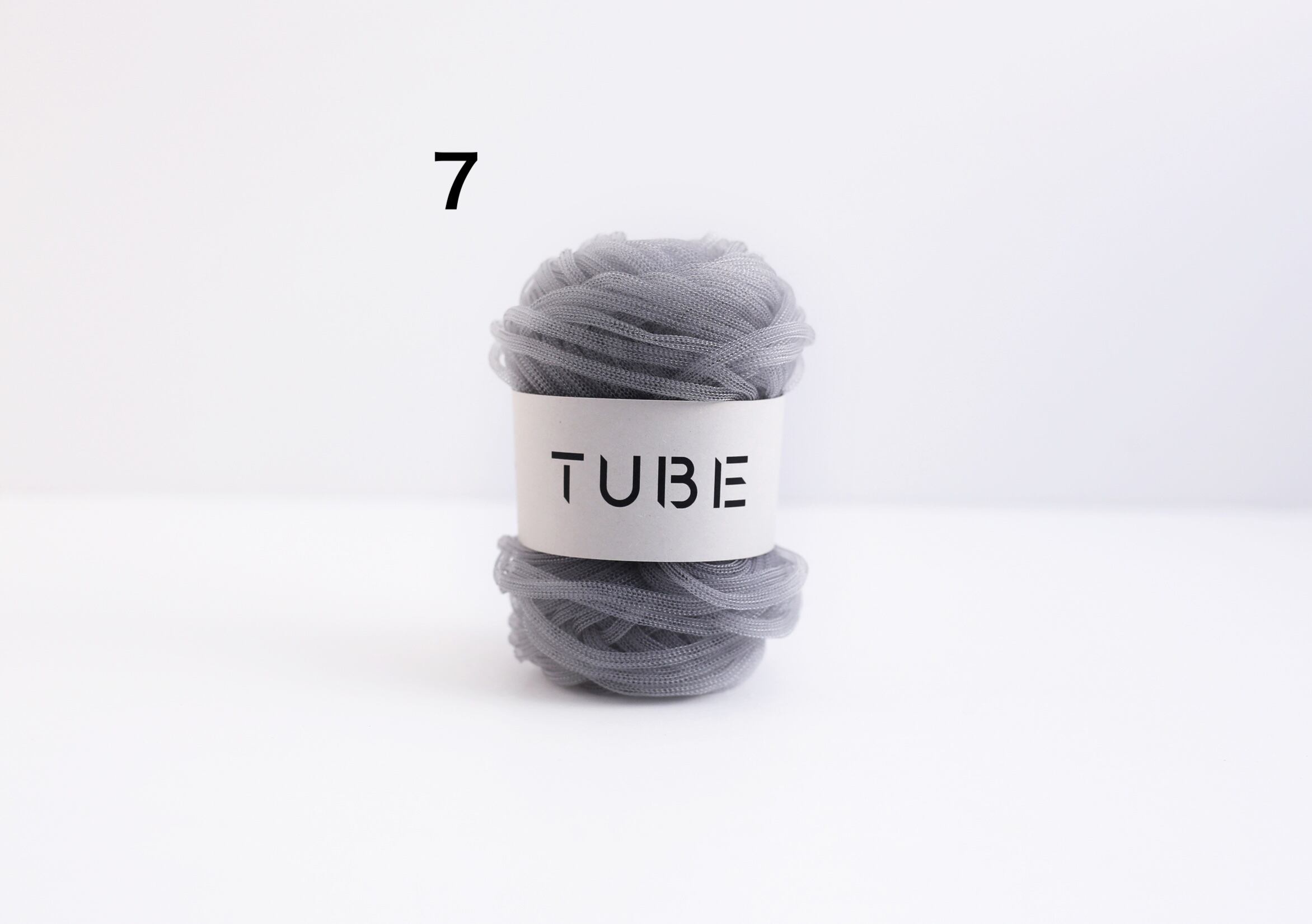 「TUBE」は釣り糸のような細いナイロン糸をリリアンに編みあげて1本の太い糸にした特殊な糸です。