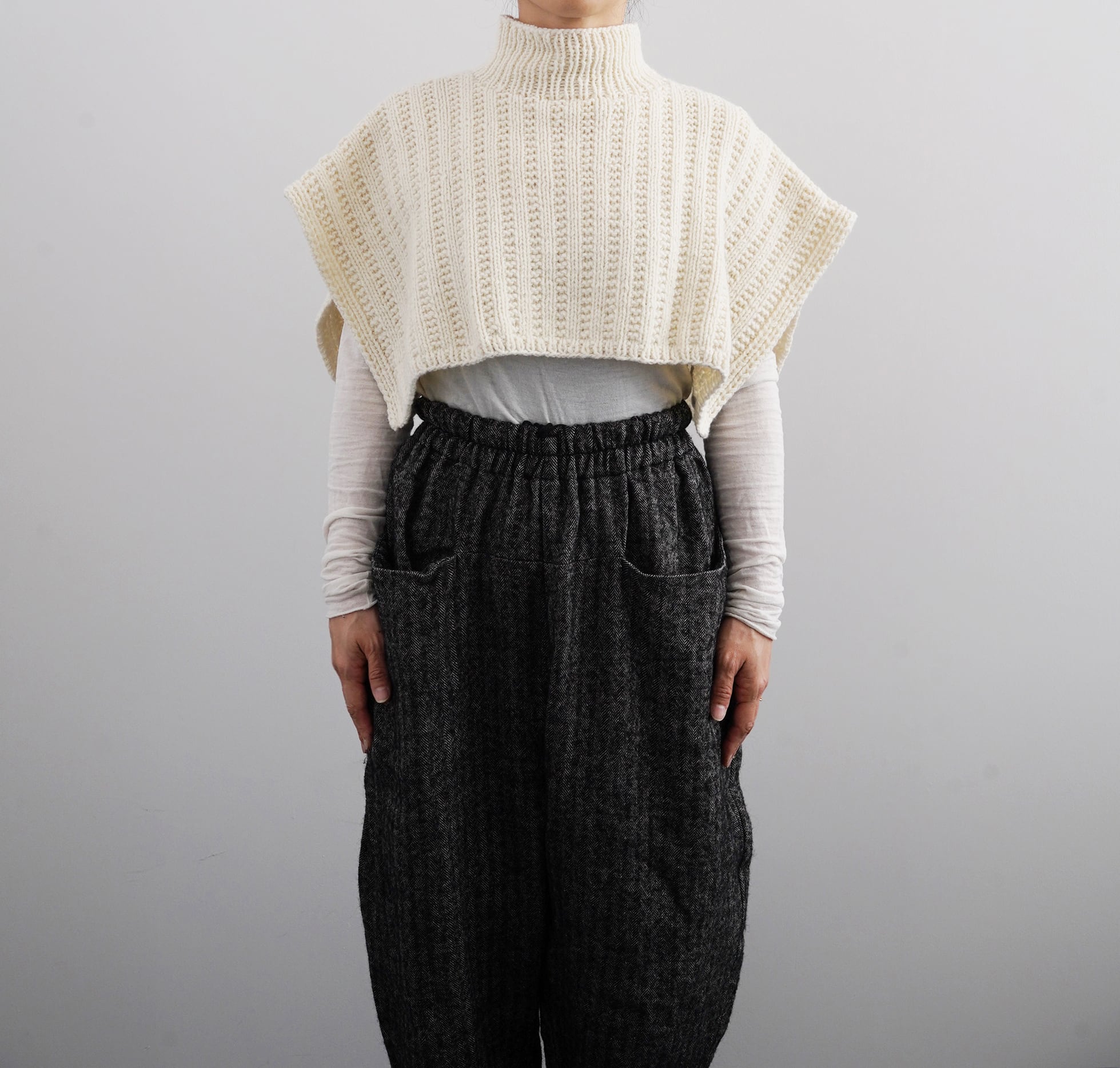 手編みのキット商品、DARUMA毛糸の「ハイネックケープ」。