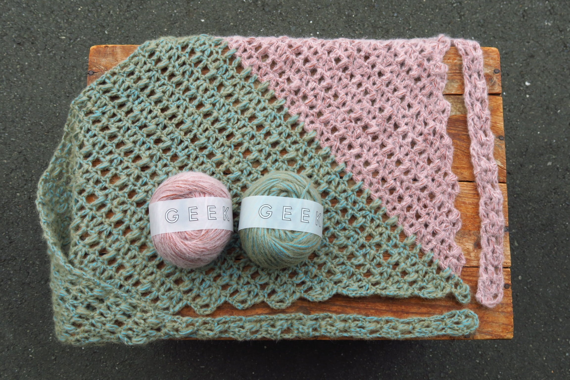 DARUMAK毛糸のGEEKを使ったかぎ針編みのキット「クロッシェショール」。