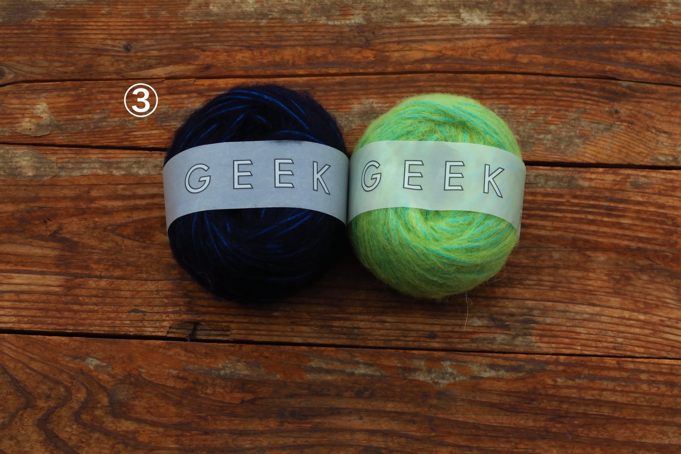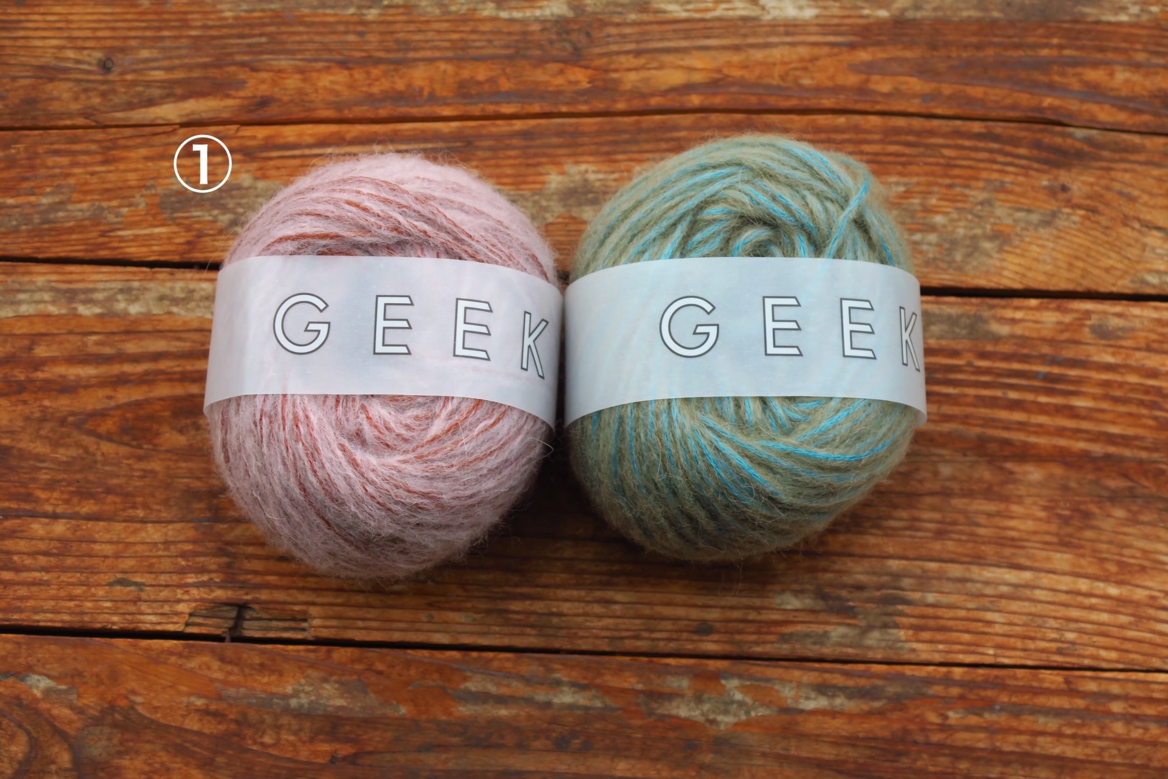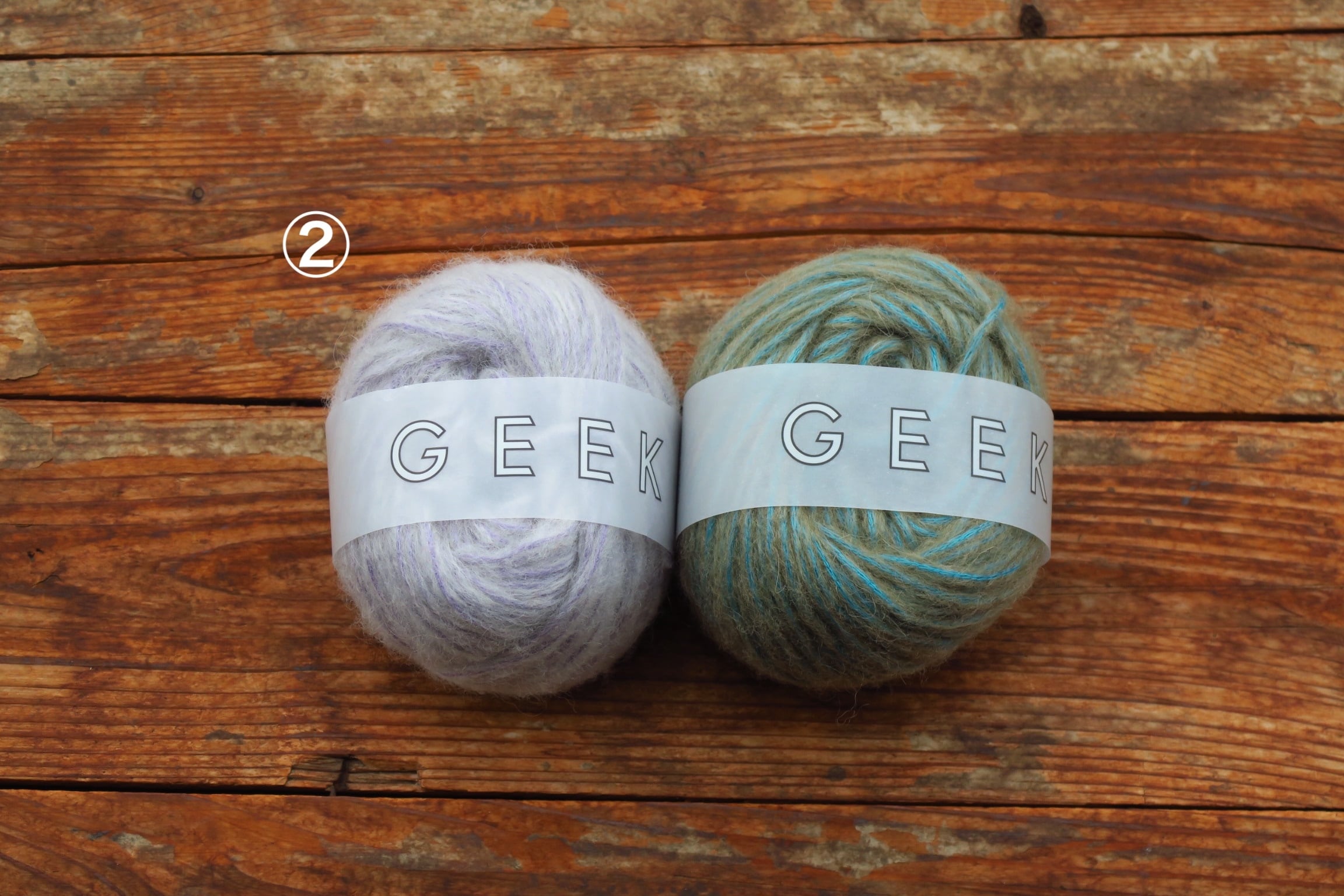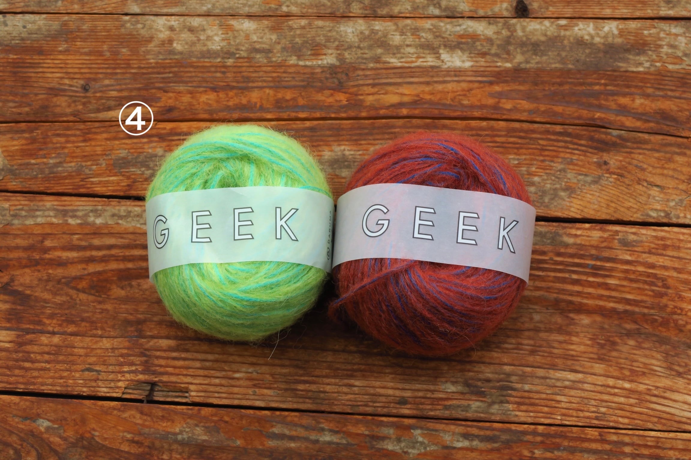 毛糸:DARUMA GEEK 4玉 (1玉30g/70m ウール56%、ポリエステル30%、アルパカ14%)
