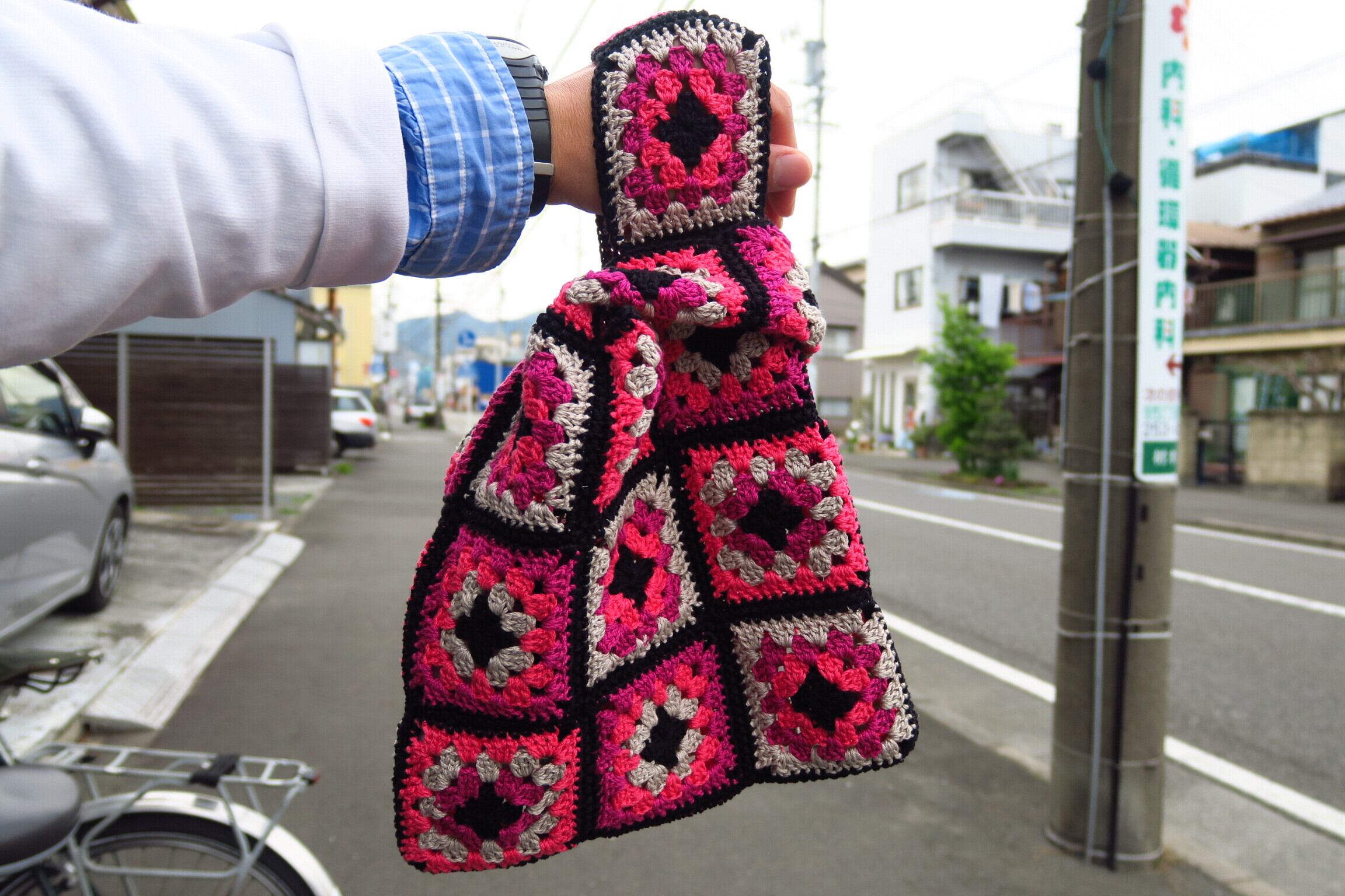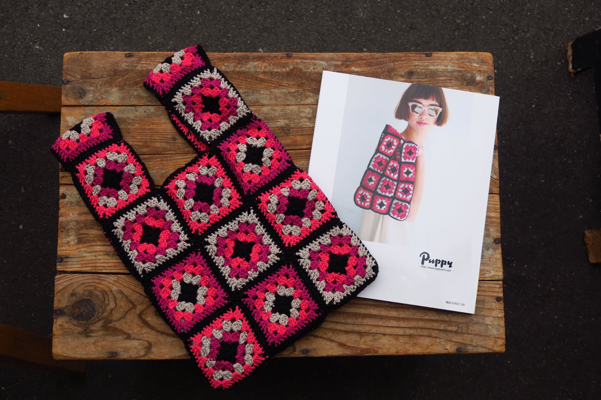 パピーのコットンコナを使用したモチーフ編みバッグのキットです。
