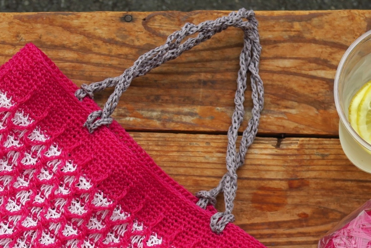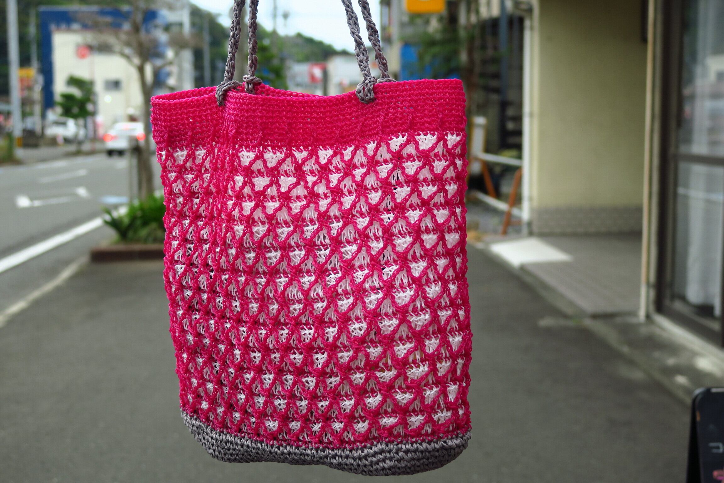 秋山毛糸店のオリジナルデザインのかぎ針編みサマーバッグ