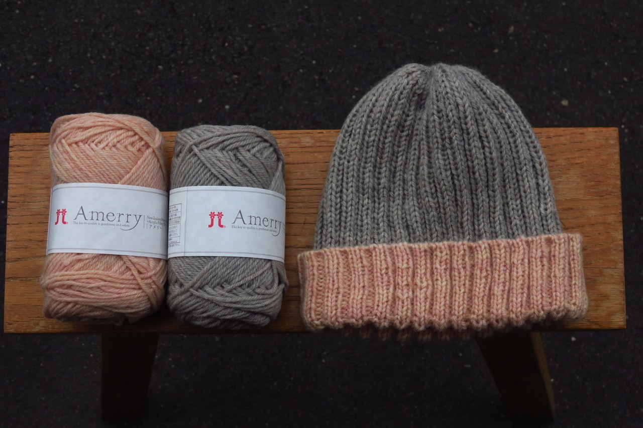 画像のニット帽は2色使っていますが、もちろん1色で作っても良いです。