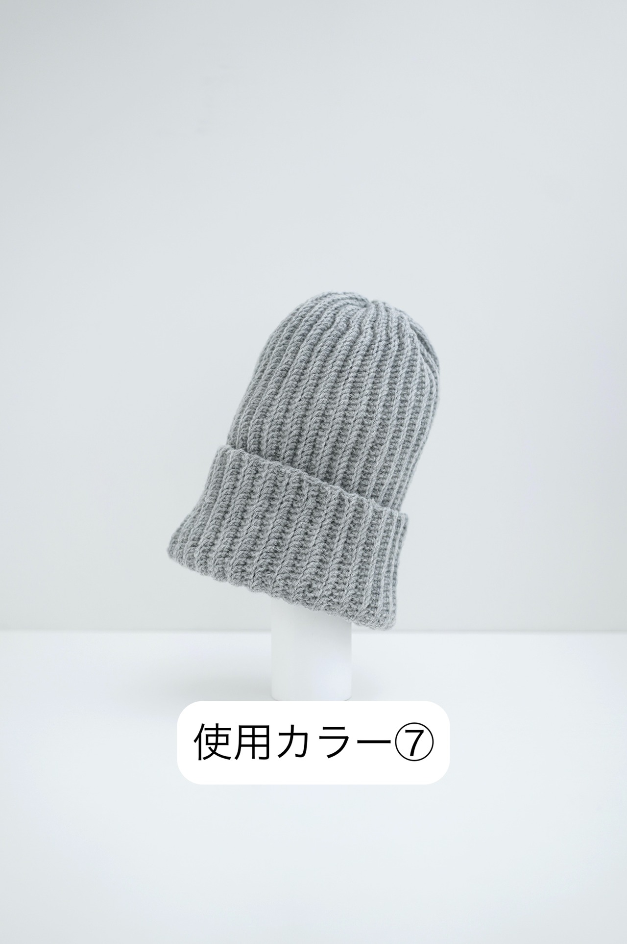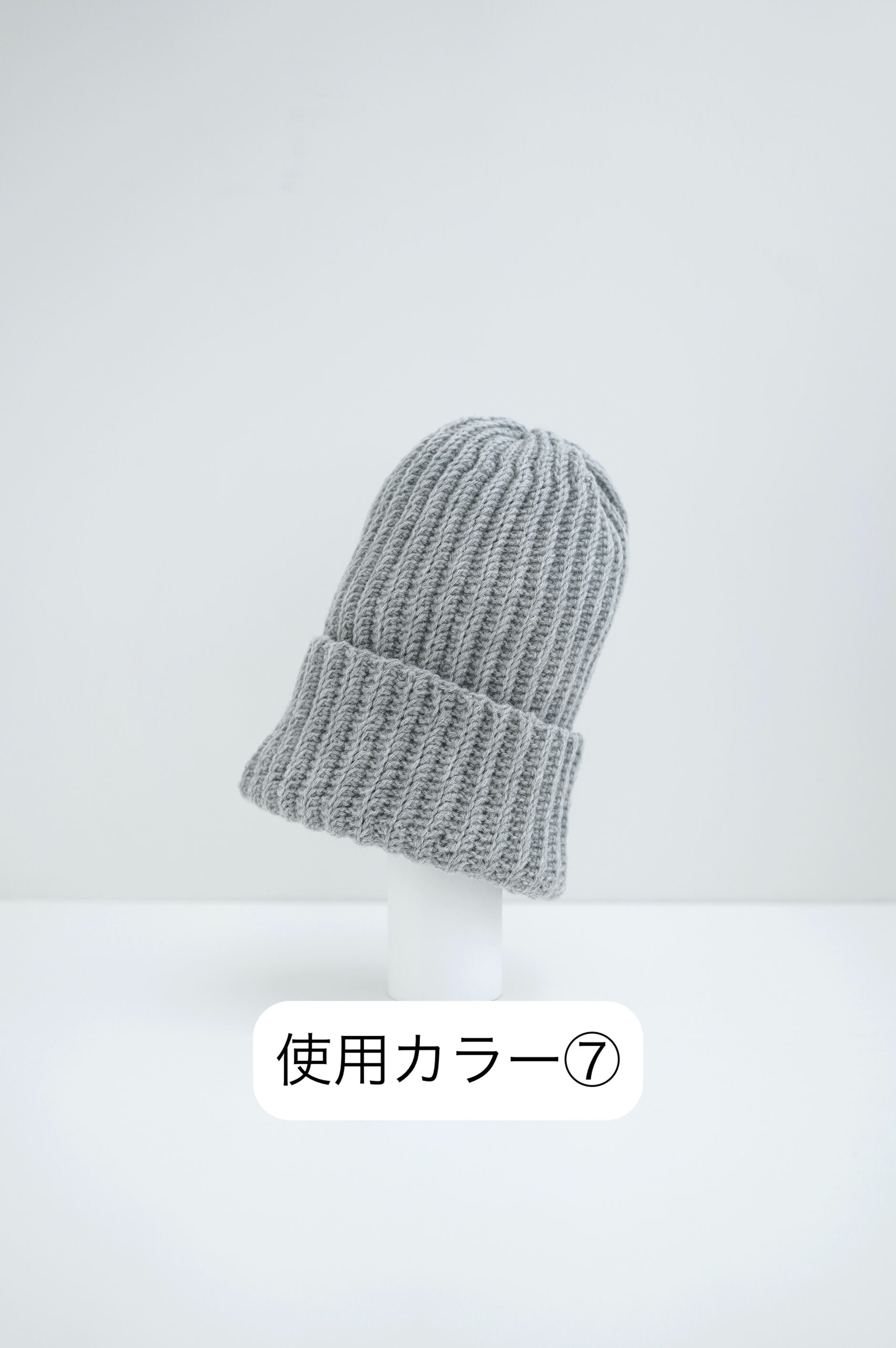 ○着用作品「カラー2」 平置きサイズ:頭周48cm 深さ24cm(モデル頭周59cm)